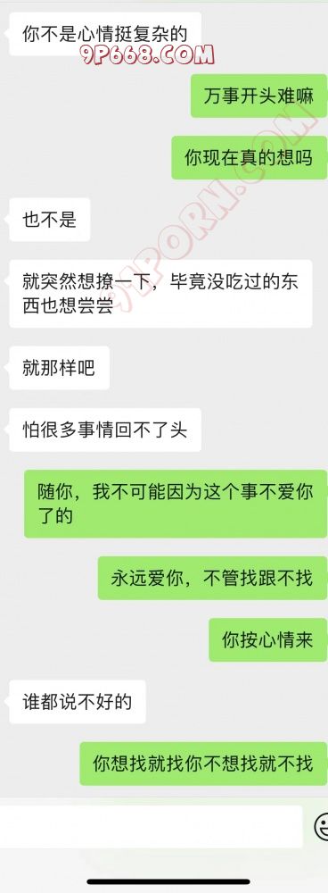 况是这样,走一年前开始发现喜欢看绿帽淫妻的片子,做爱的时候开始跟老婆说,慢慢带入,刚开始她非常反感,后来慢慢做的时候也同意,但是做完就不行甚至翻脸。前段时间说担心影响家庭影响感情,然后这段时间我没说这个事情,但是她昨天晚上自己上交友网站找了一个聊天。然后告诉了别人情况,这个男的让她试探我,结果她真的按人家男的说的方法来试探我,这我有点不爽。然后现在的心情确实是很复杂,有期待有激动有担忧有害怕。她目前的状态我感觉是想要试试但是害怕,一是性病艾滋病这些,二是夫妻感情跟家庭,三是过不去传统道德。晚上她给我看了全部的聊天记录,再后来说嫌我烦,不想让我看了。然后说等我出差回来给我一次性看,我问她要是这期间你们约了呢,她说约就约呗。反正你同意。我的初衷是所有的都在我的掌控中,但现在我感觉有点脱离我的掌控,我不确定她会不会偷偷背着我去约,会不会被别人操了跟没事人一样,如果是这样我就感觉有点害怕。各位帮我分析一下,她背着我去搞的几率大吗?